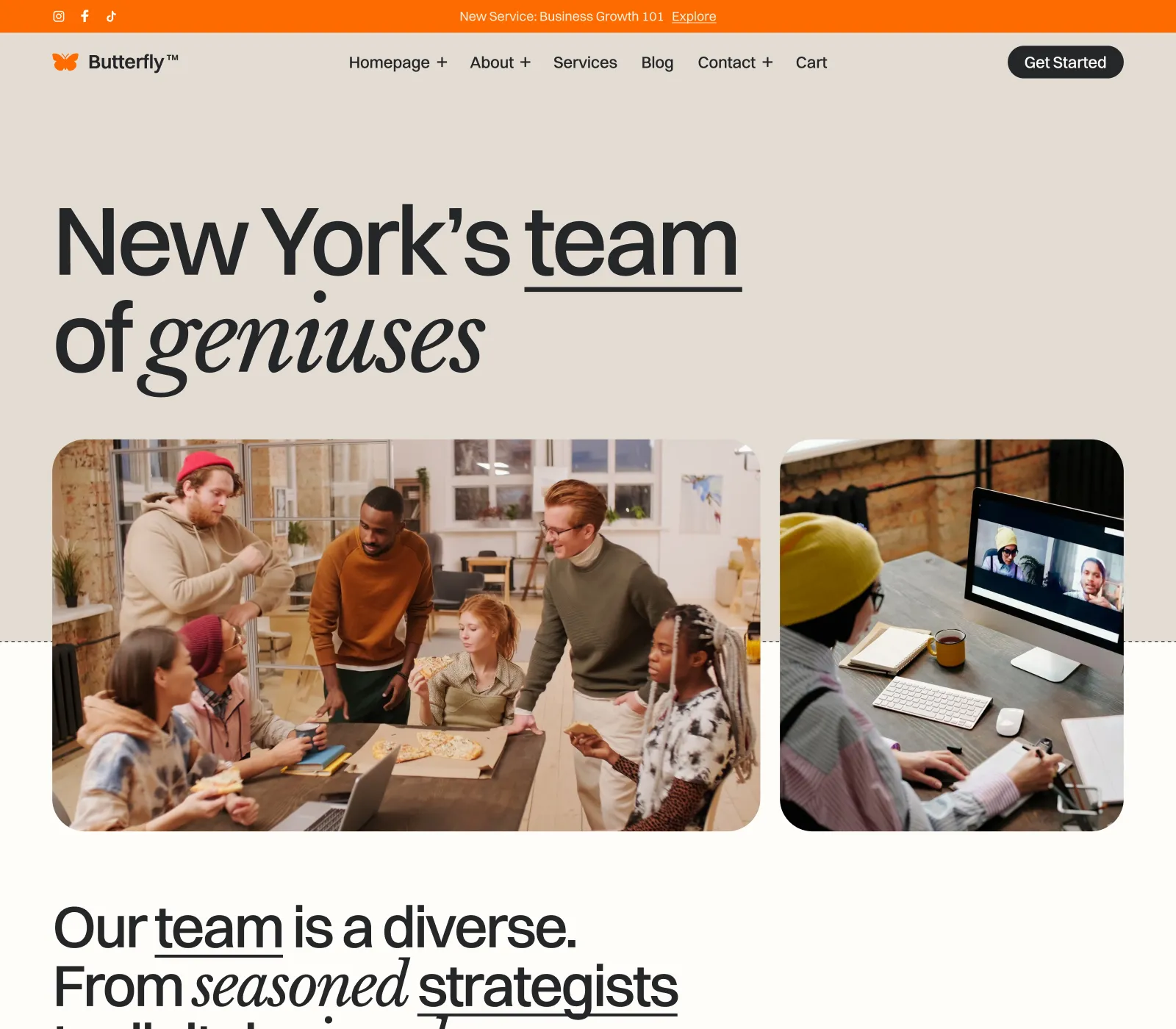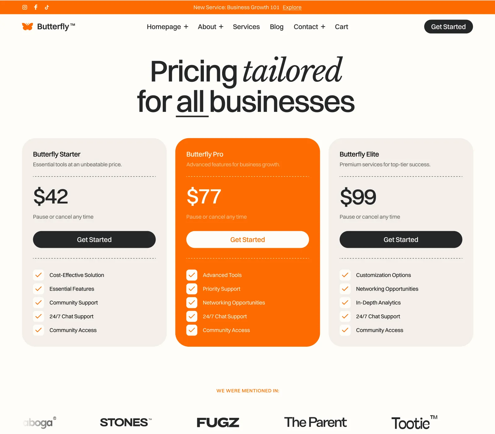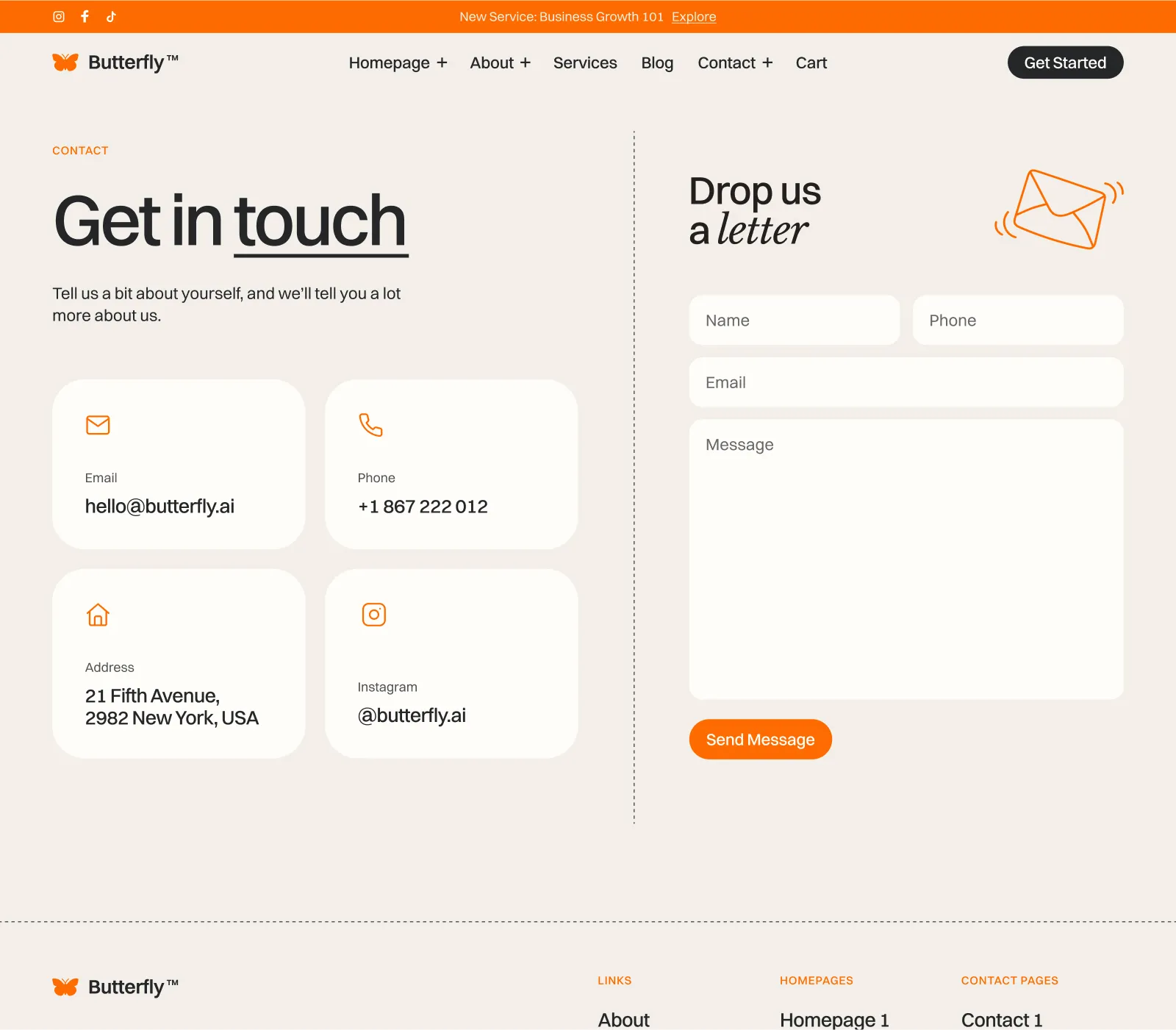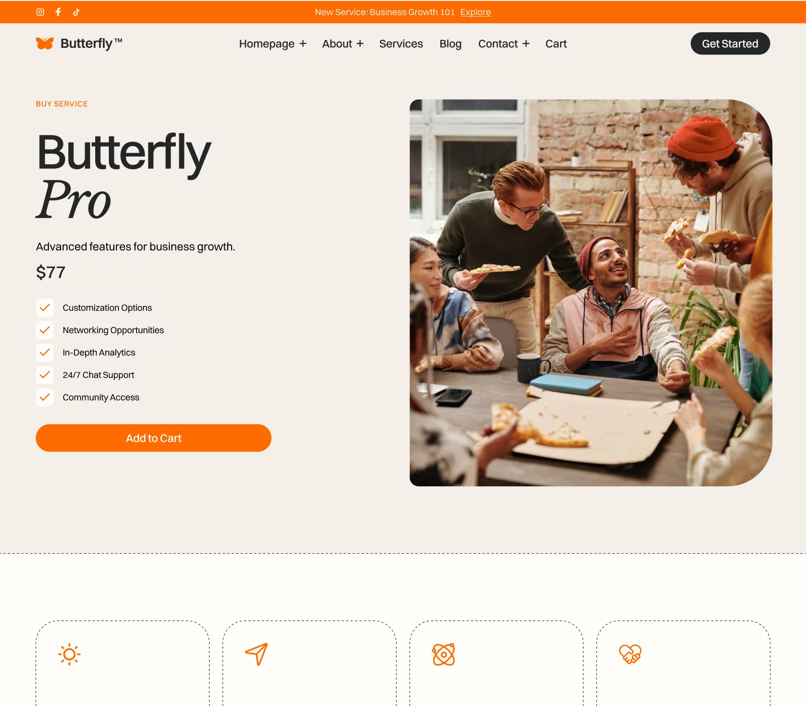 Butterfly Template comes with eCommerce set up, so you can start selling your services straight away.