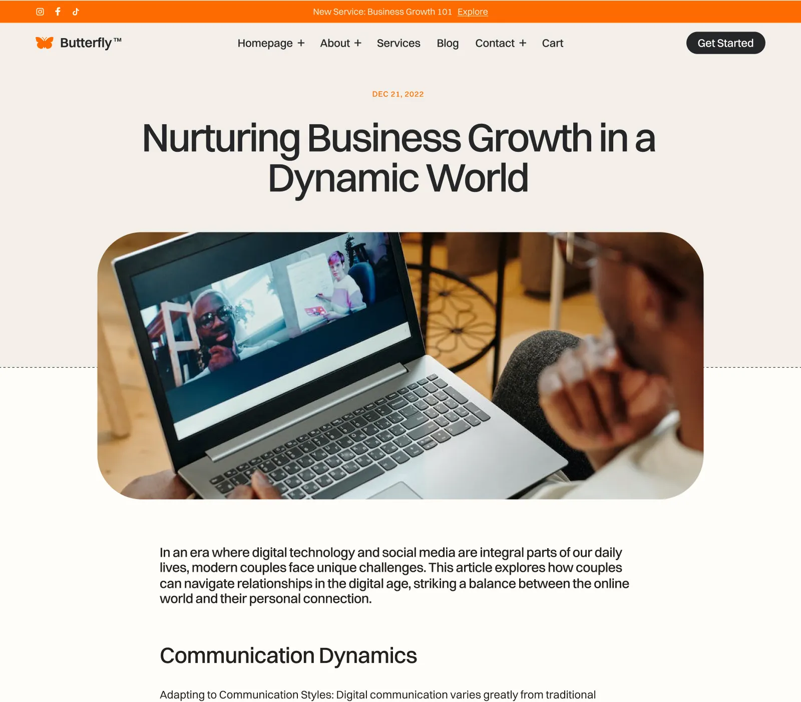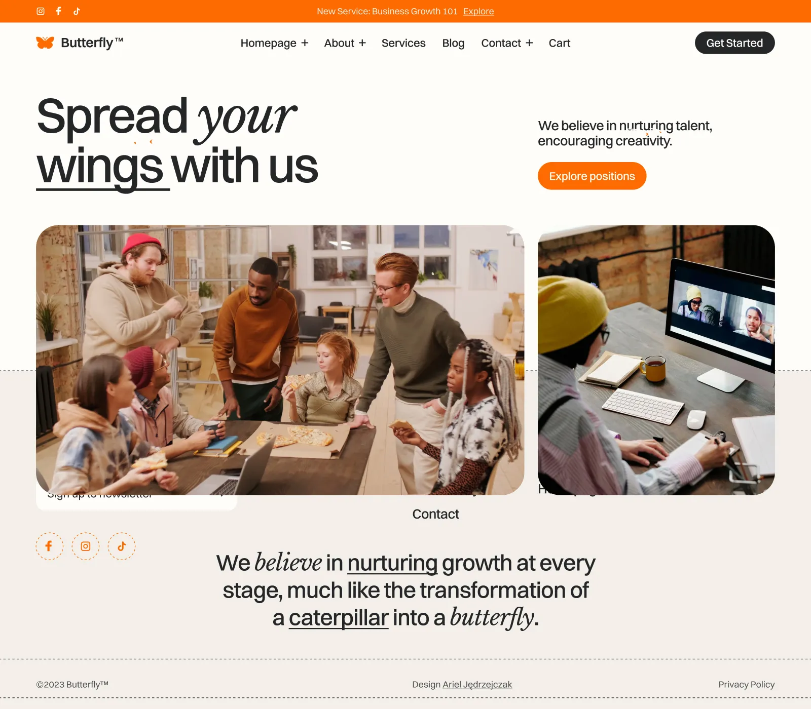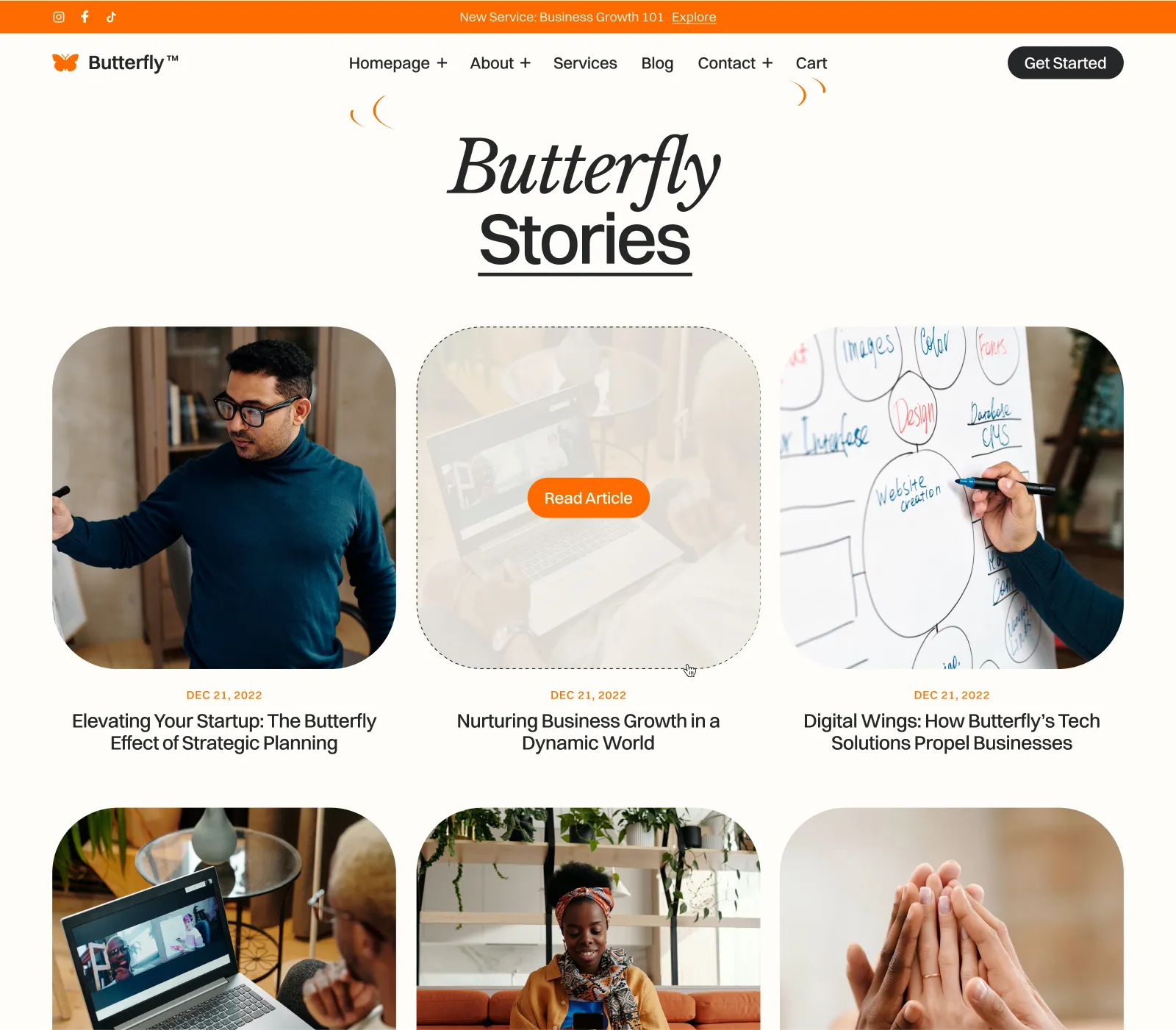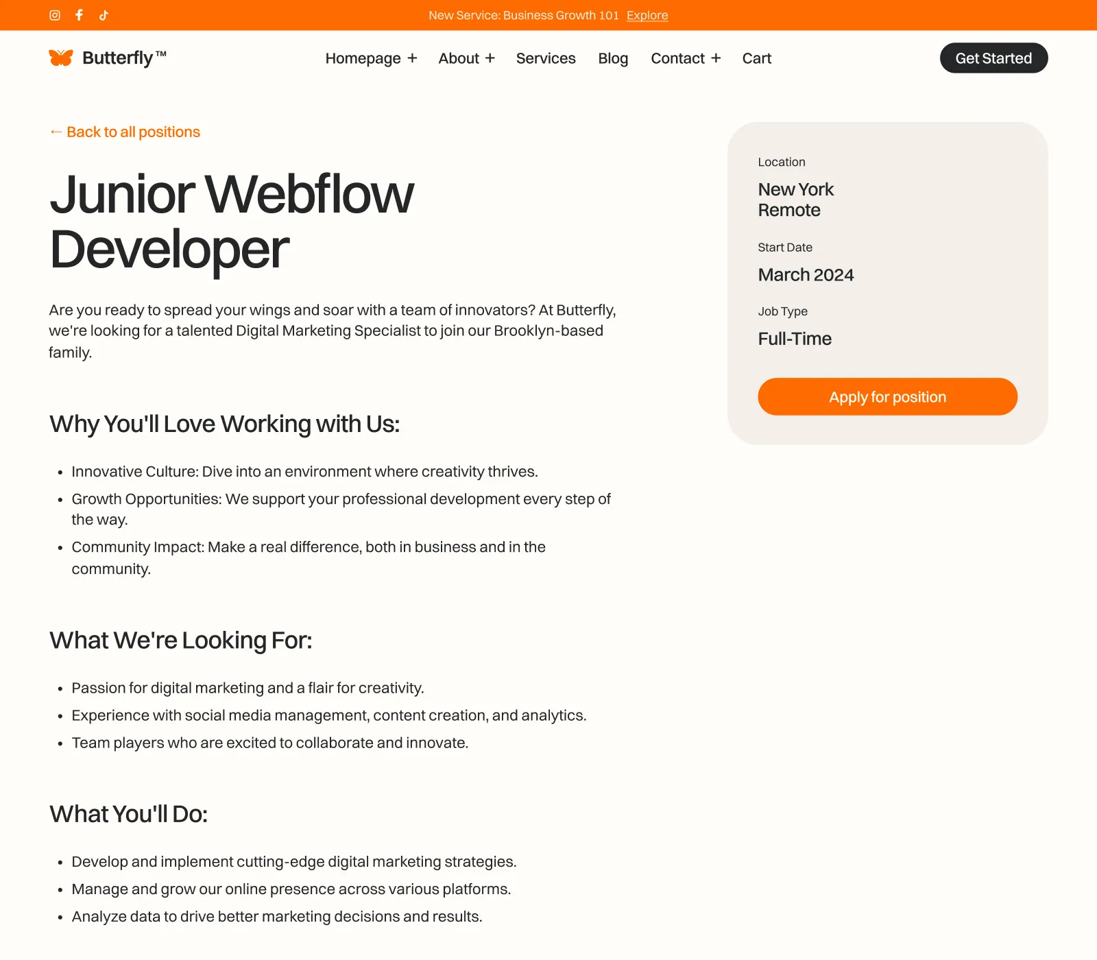 Butterfly includes a blog and careers collections that are made on the powerful Webflow CMS. This will let you add new content extremely easily.