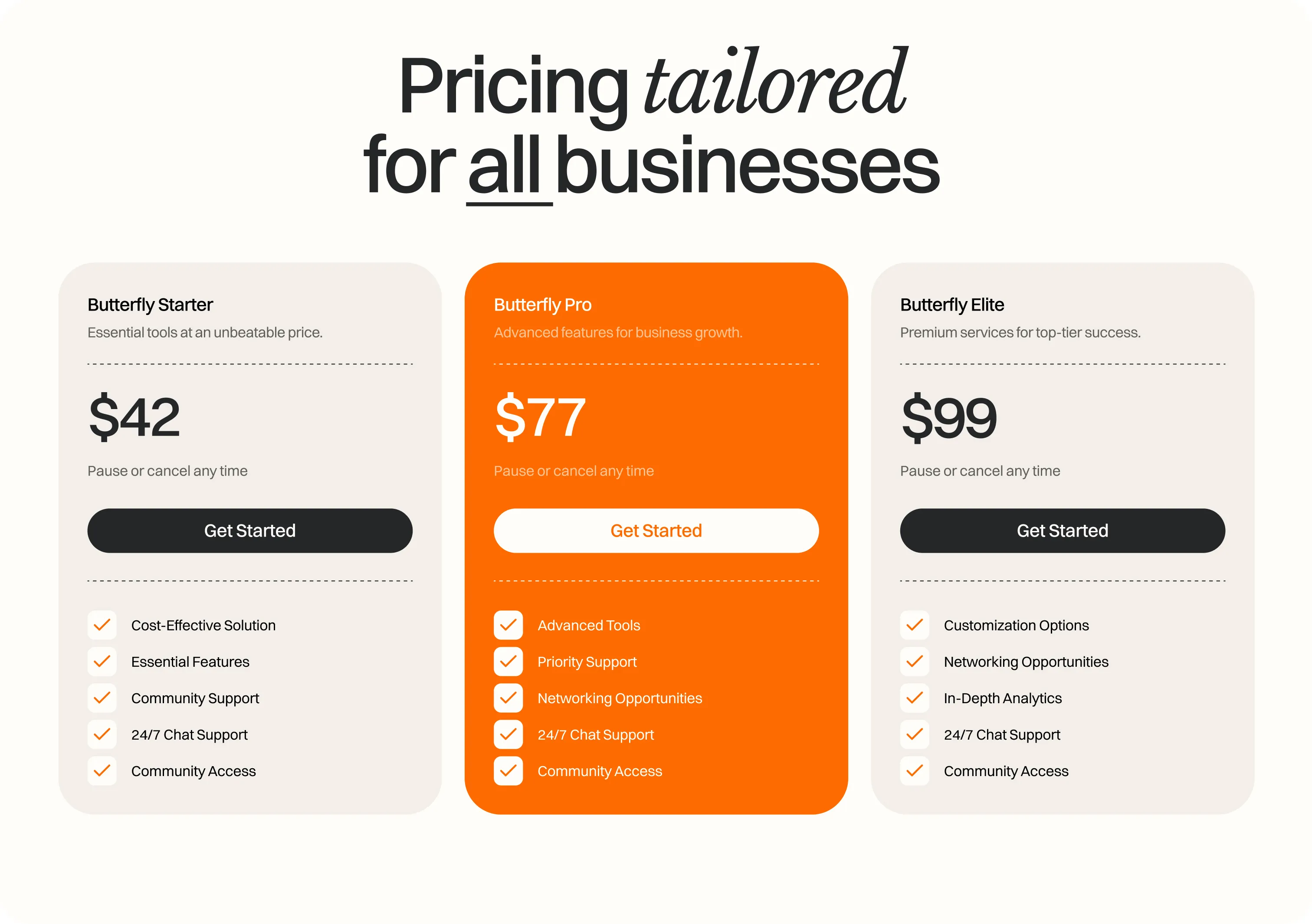 Butterfly is optimized to offer a frictionless experience on every screen. No matter how you combine our sections, they will look good on desktop, tablet, and phone.